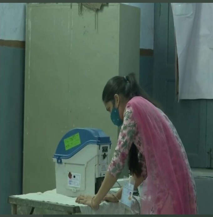 Voters casting their vote at Polling Station made from Shipping container (Source: The Election Commission of India' Official Twitter Handle)