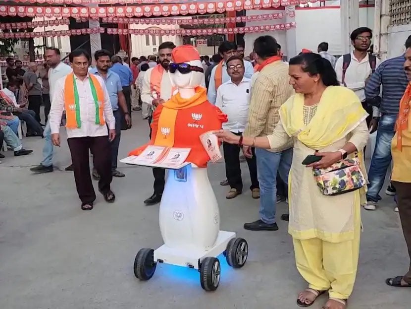 For the first time in India's electoral history, a robot was seen distributing BJP pamphlets to voters in Nadiad assembly constituency in Gujarat's Kheda district. While 3D projection technology was extensively used in 2012, the mastery over social media tools was taken to another level in the 2017 assembly elections.