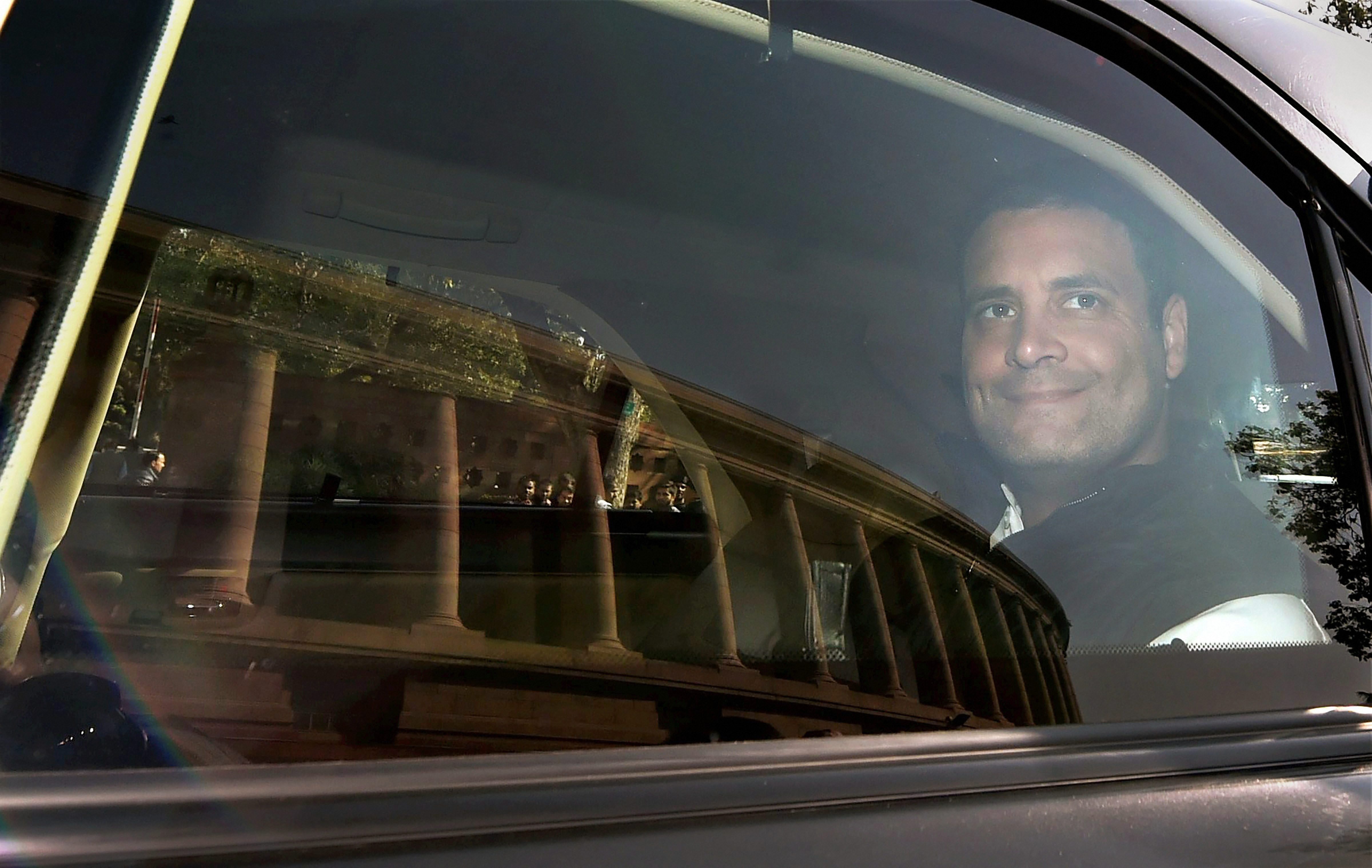 Congress President Rahul Gandhi arrives for the winter session of Parliament, in New Delhi on Monday. (Photographer: Manvender Vashist/PTI)