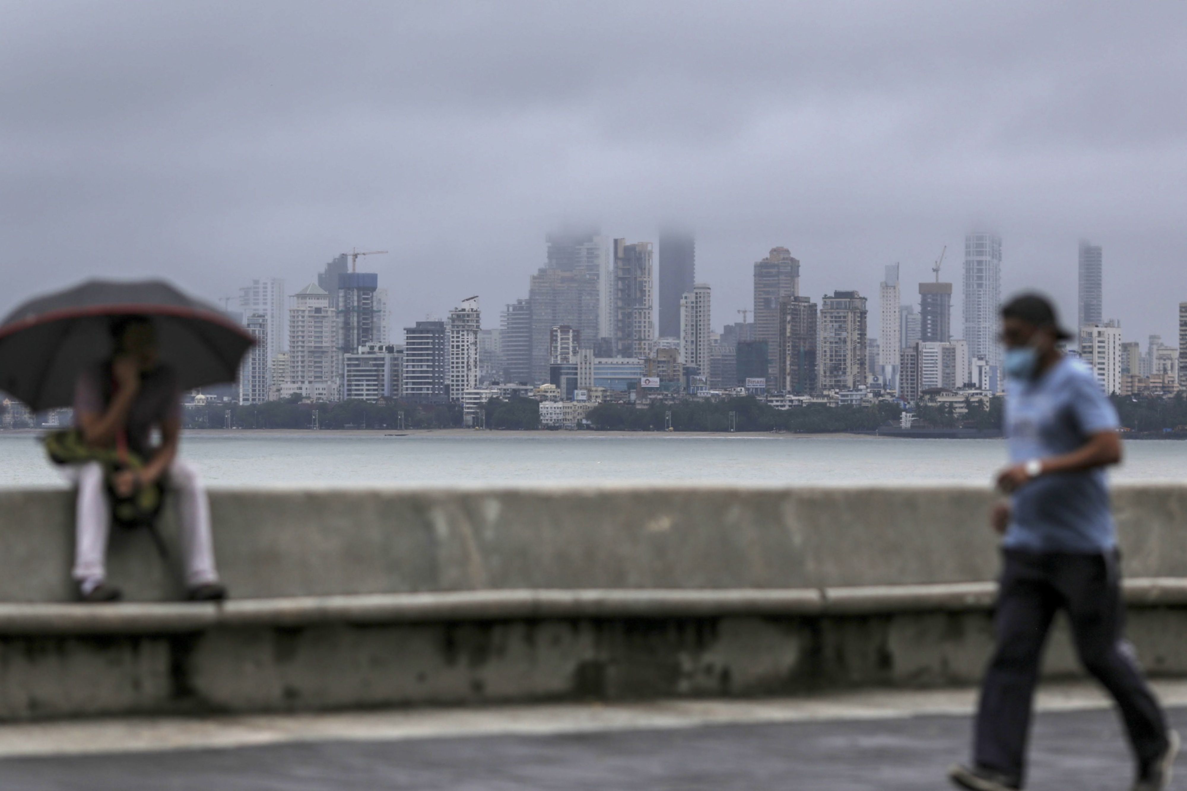 A man wearing a protective face mask runs along a deserted Marine drive in Mumbai, India. (Photographer: Dhiraj Singh/Bloomberg)