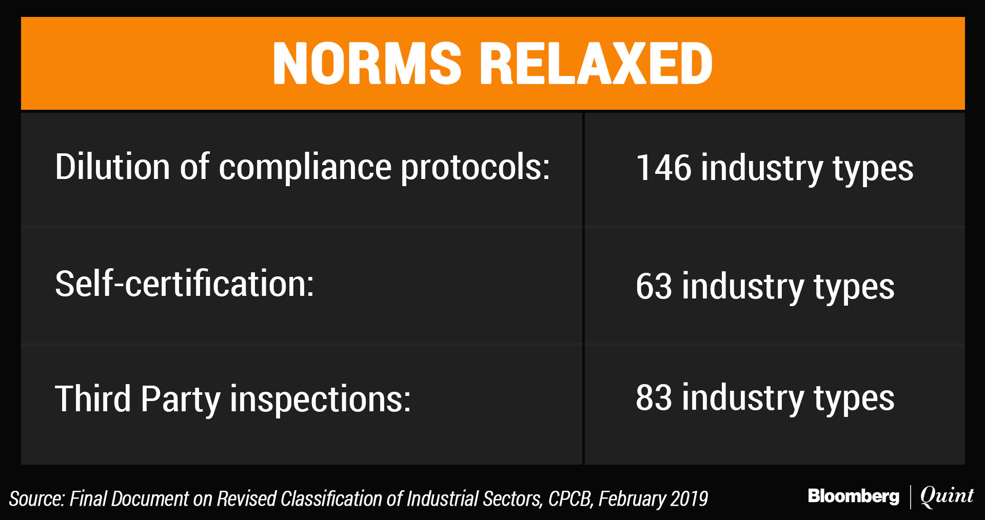 The dilution of environmental regulations has coincided with the expansion plans of several sectors recently exempted from board inspections. Many projects from the exempted categories were recently in the news for defaulting on environmental norms. These changes have been brought in despite the environment ministry's admission that compliance is weak.