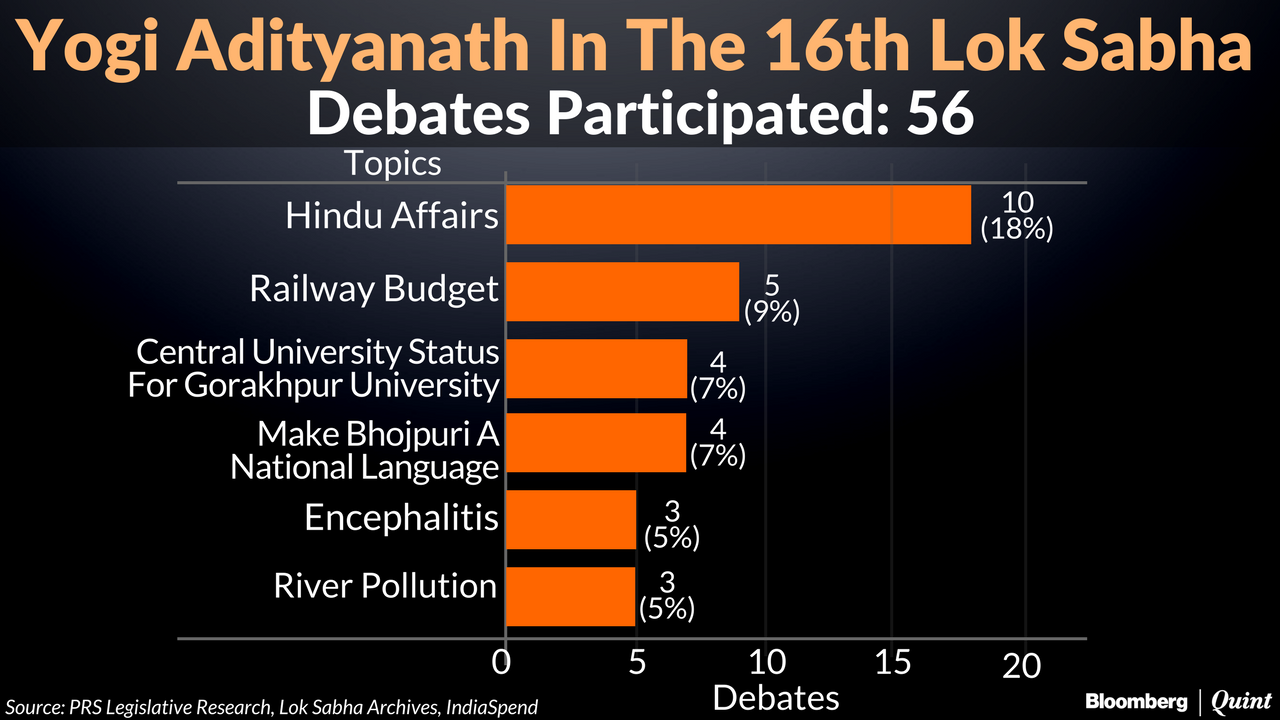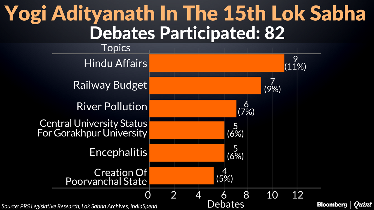 Adityanath participated in 82 debates against the average of 38 for other MPs.