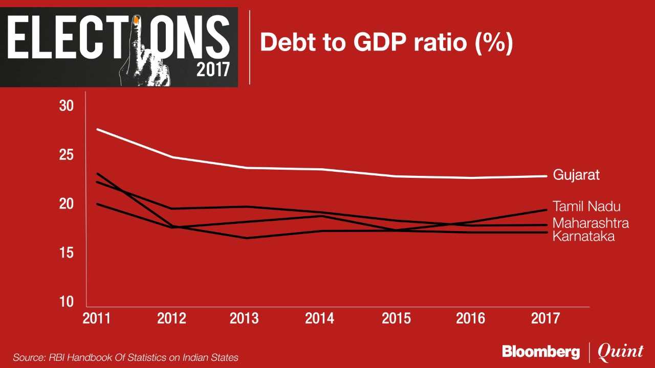 While Gujarat has managed to contain its debt levels over the last three years, its indebtedness, as a percentage of GDP, is well above the other three states.