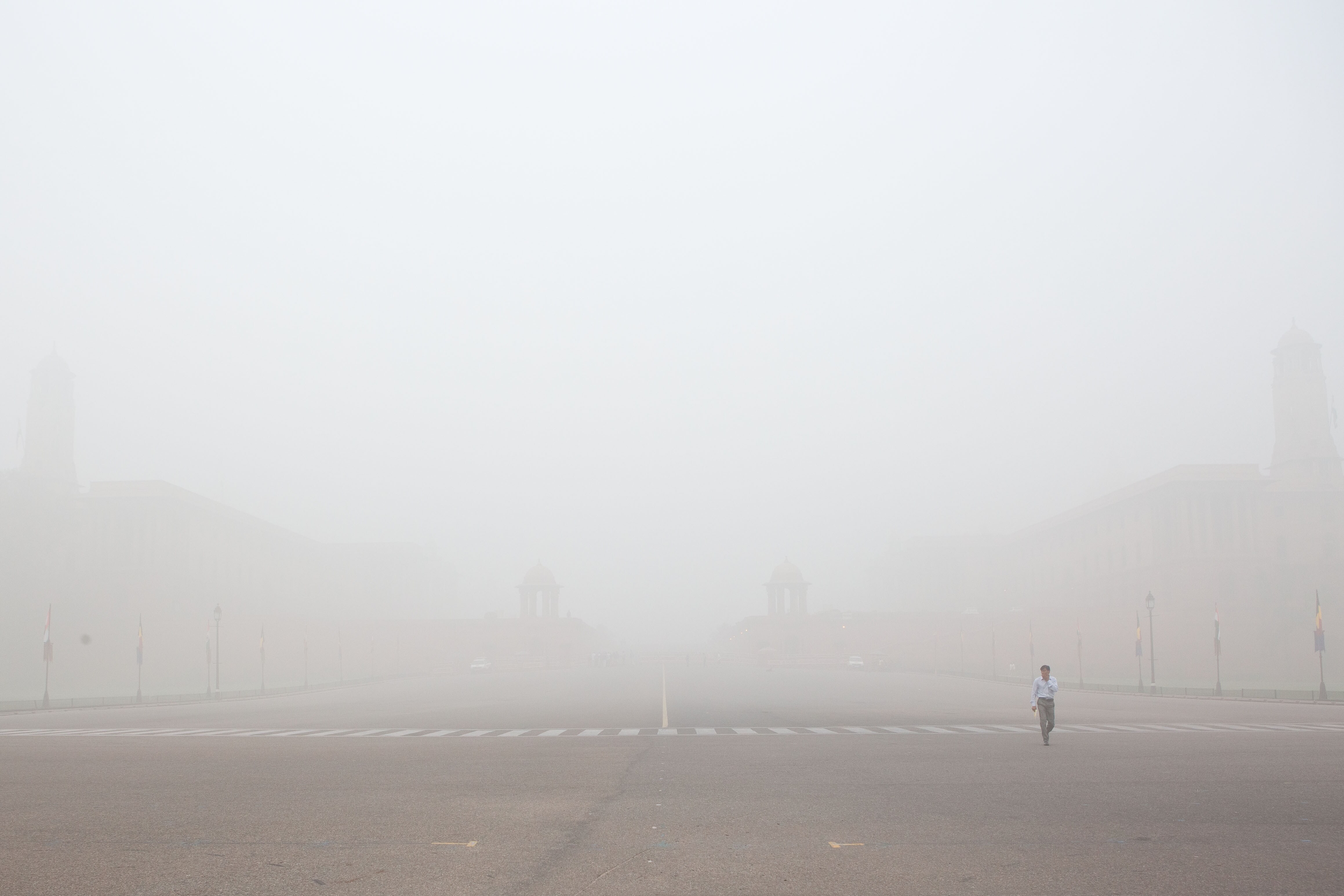 Walking ahead, I found even the Rastrapati Bhawan shrouded in smog.