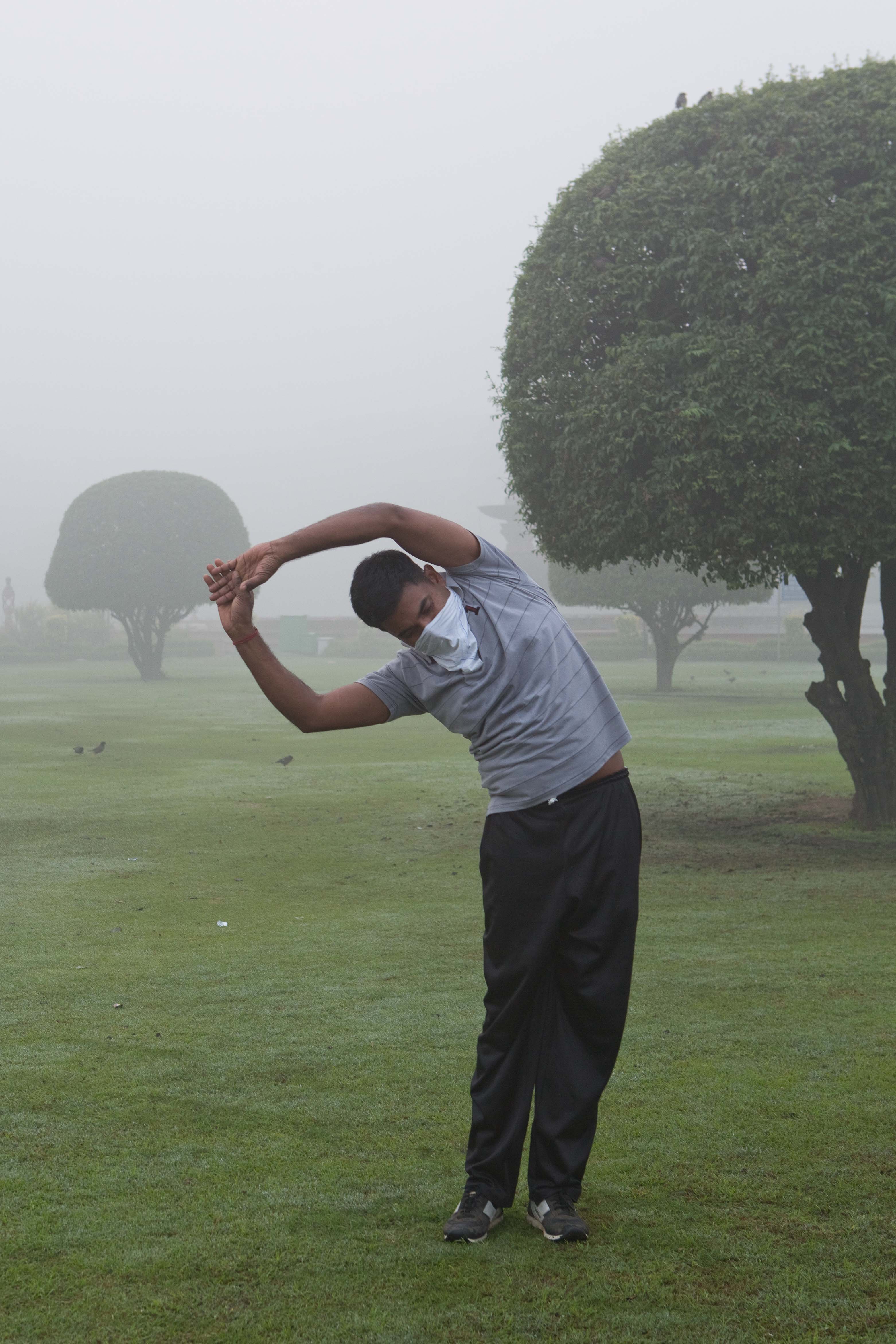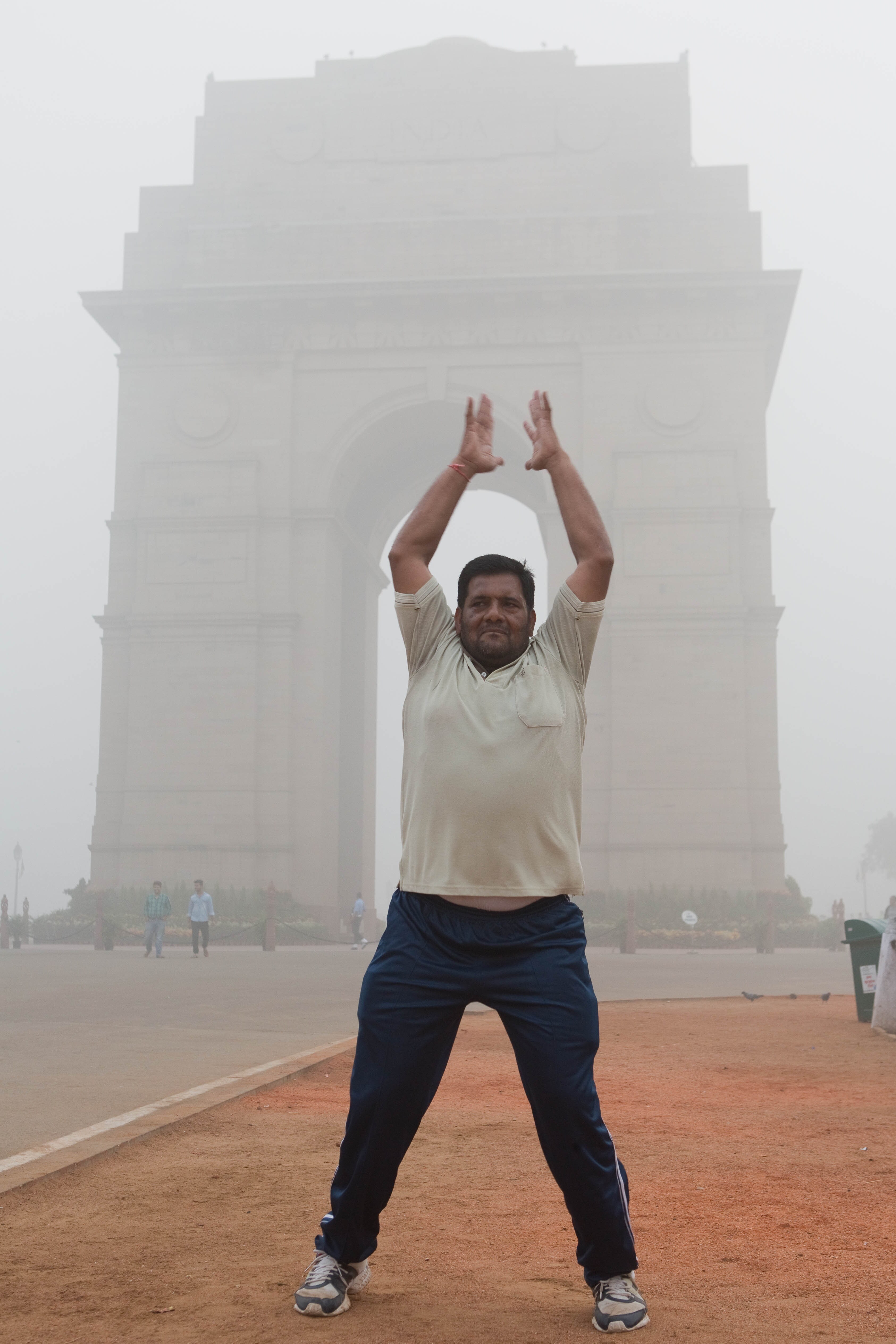 Then I saw a policeman doing his stretches, undeterred by the poison around him. He said,“The pollution is almost the same when compared to Hyderabad.”