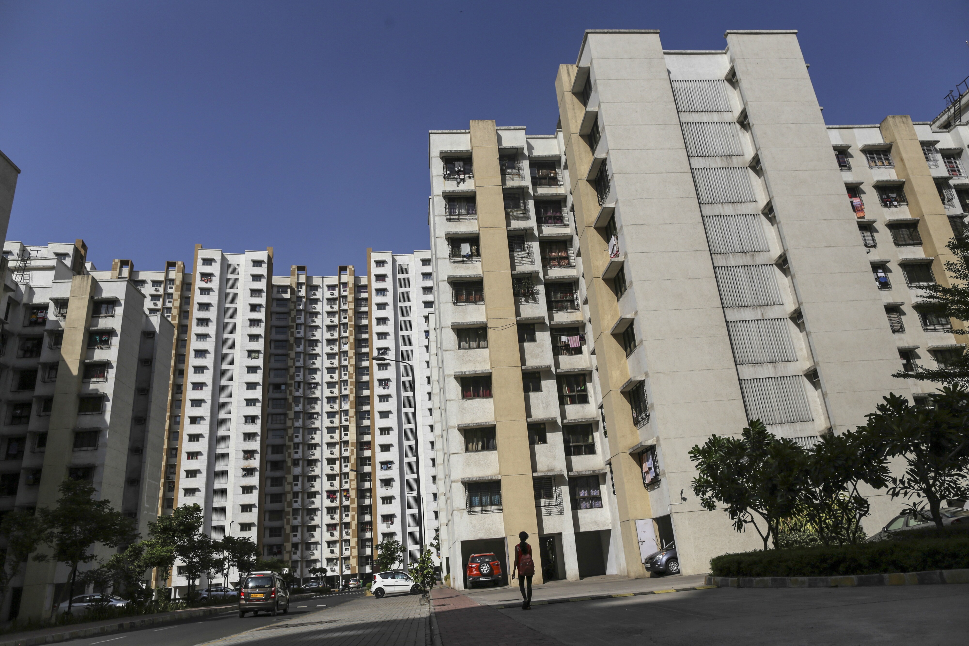 Residential apartment buildings stand in Palava City on the outskirts of Mumbai, India. (Photographer: Dhiraj Singh/Bloomberg)