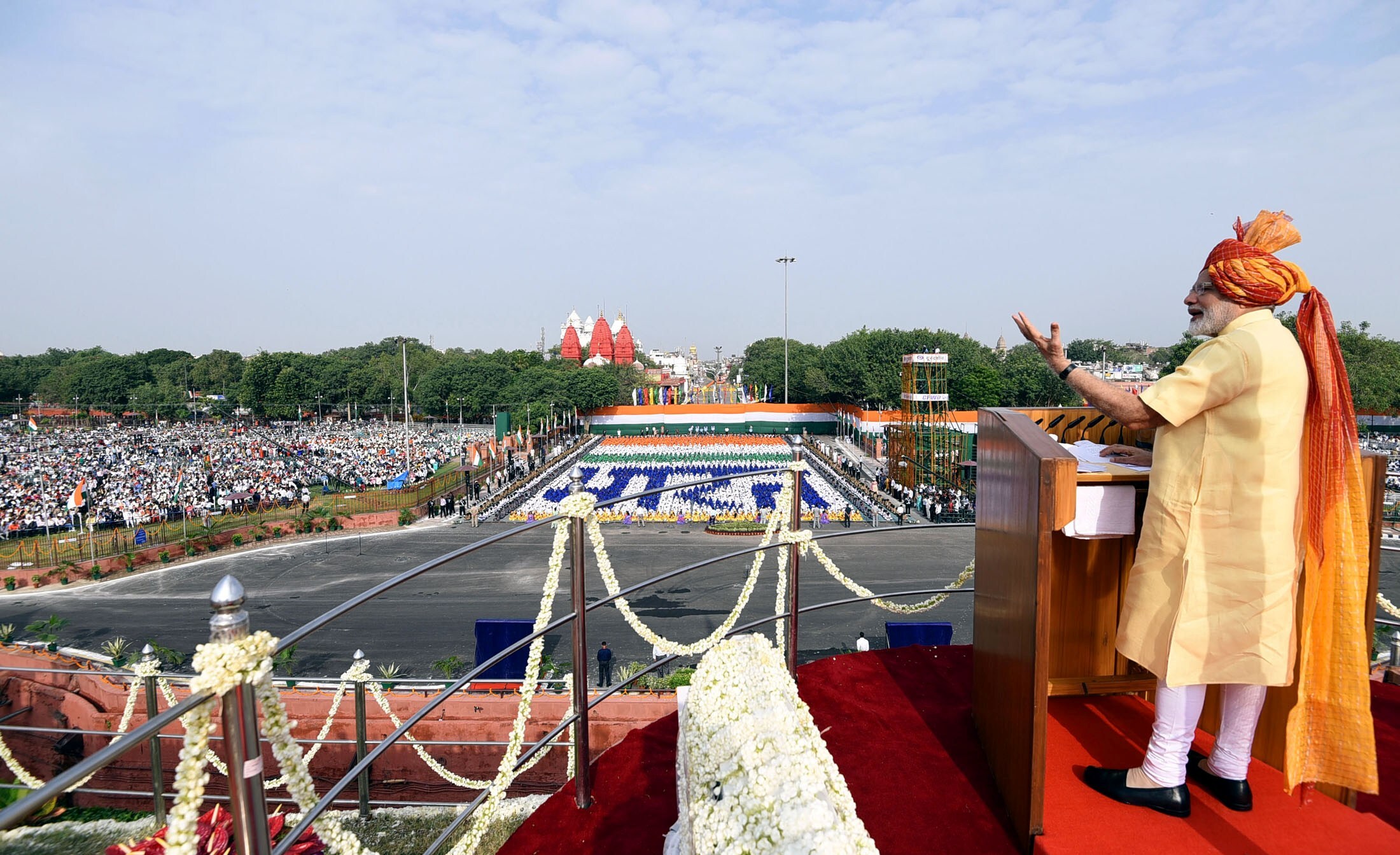 The Prime Minister, Narendra Modi addressing the Nation on the occasion of 71st Independence Day from the ramparts of Red Fort, in Delhi on August 15, 2017. (Source: PM India Website)
