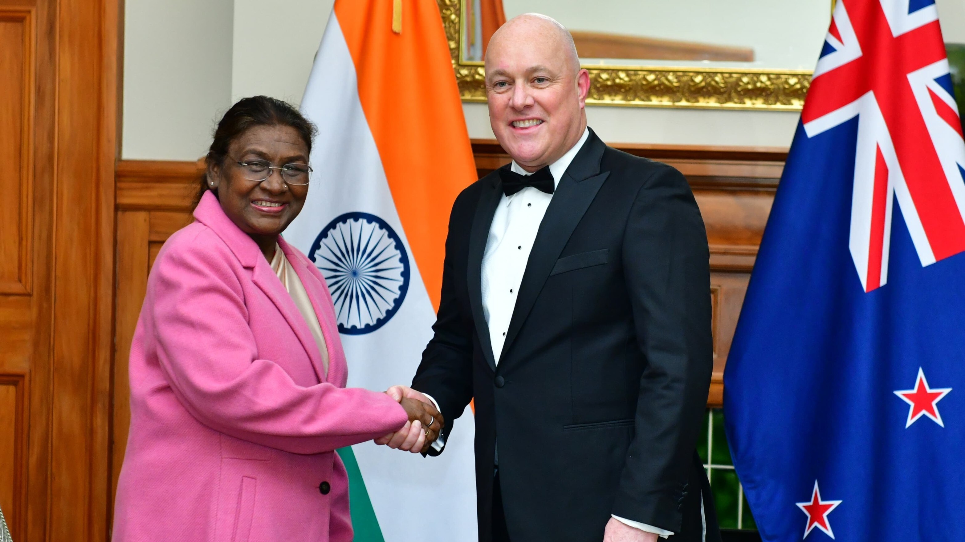 President Droupadi Murmu with Prime Minister Christopher Luxon of New Zealand. (Source: President Droupadi Murmu/ X profile)