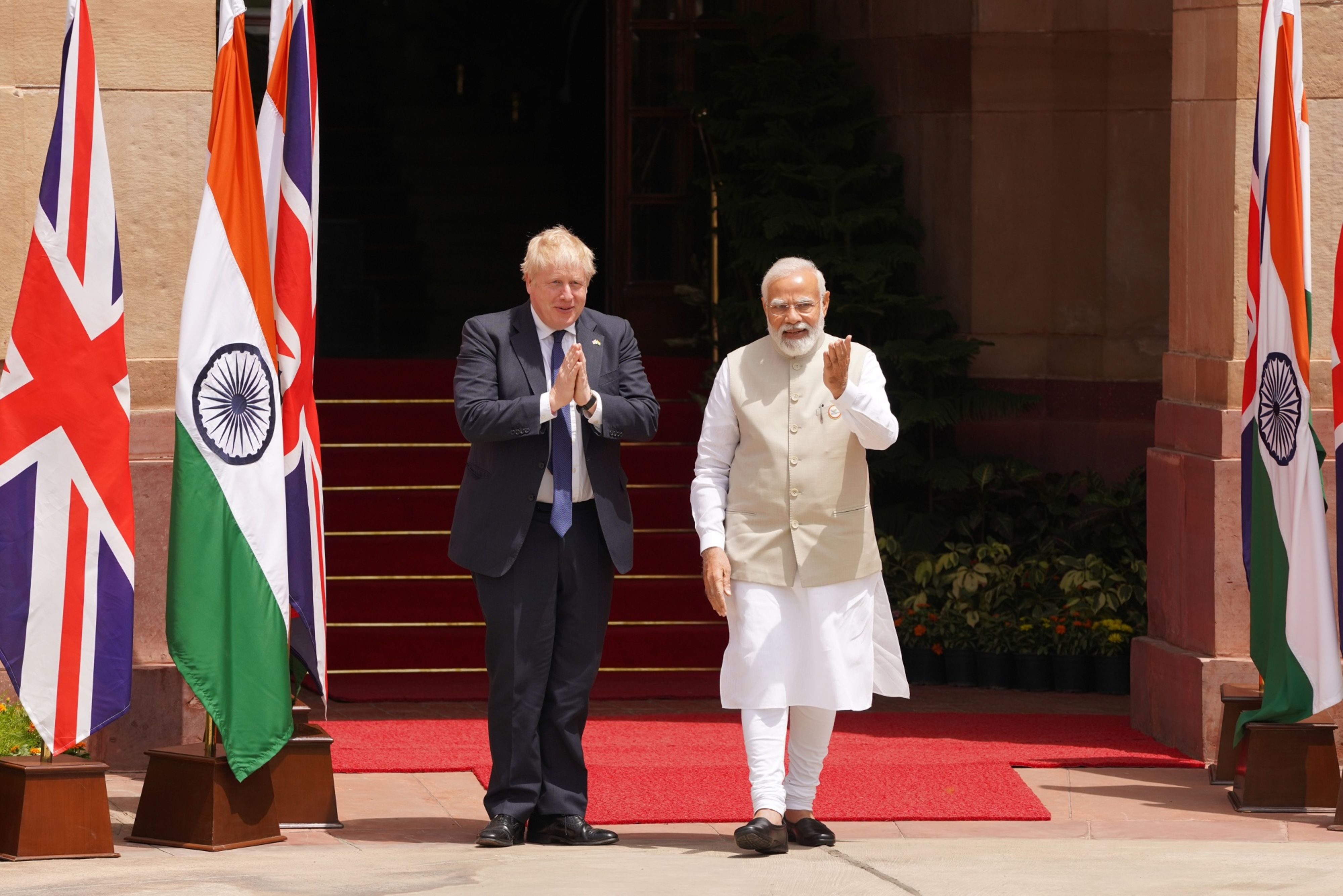 In his comments, Johnson also described the talks as wonderful and said the partnership between the U.K. and India is one of the "defining friendships of our time."