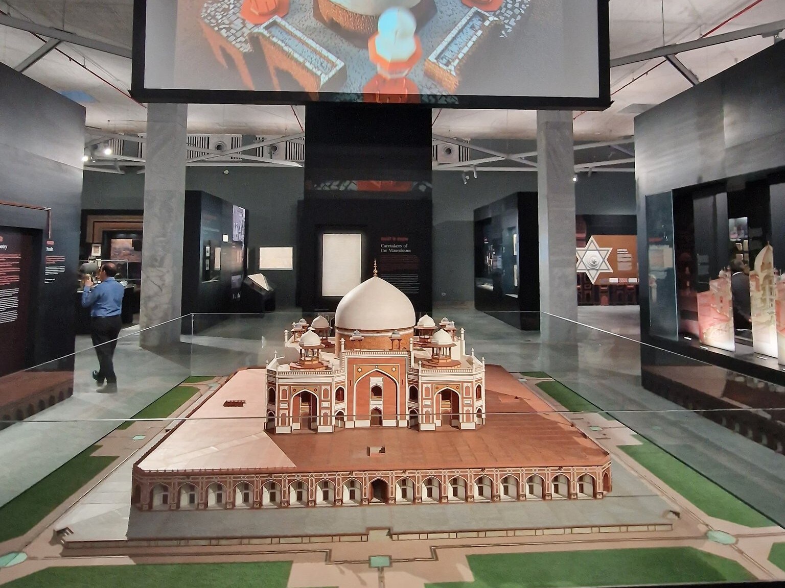 On display are miniatures, manuscripts, and significant architectural elements from Humayun's Mausoleum such as the original finial of the tomb, inspired by temples in India and made of copper of almost 100% purity, coins, contemporary art and craft pieces, astrolabes and celestial spheres.