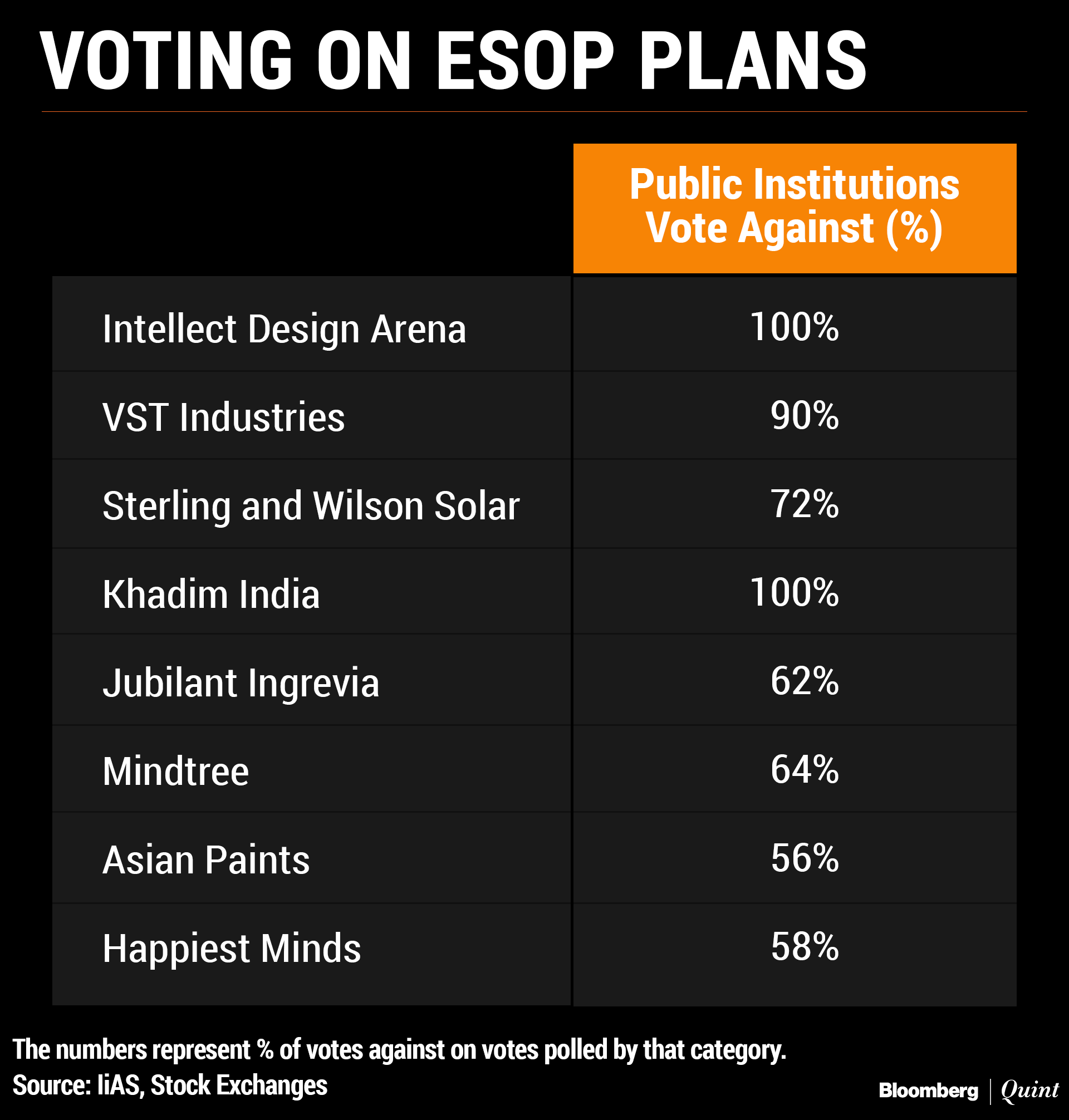 At its June-end annual general meeting, India's largest paintmaker struggled to get public shareholder approval for its employee stock option plan. 56% of the public institutional votes cast and 76% of the public non-institutional votes cast were against the proposal. It passed largely due to promoter support.