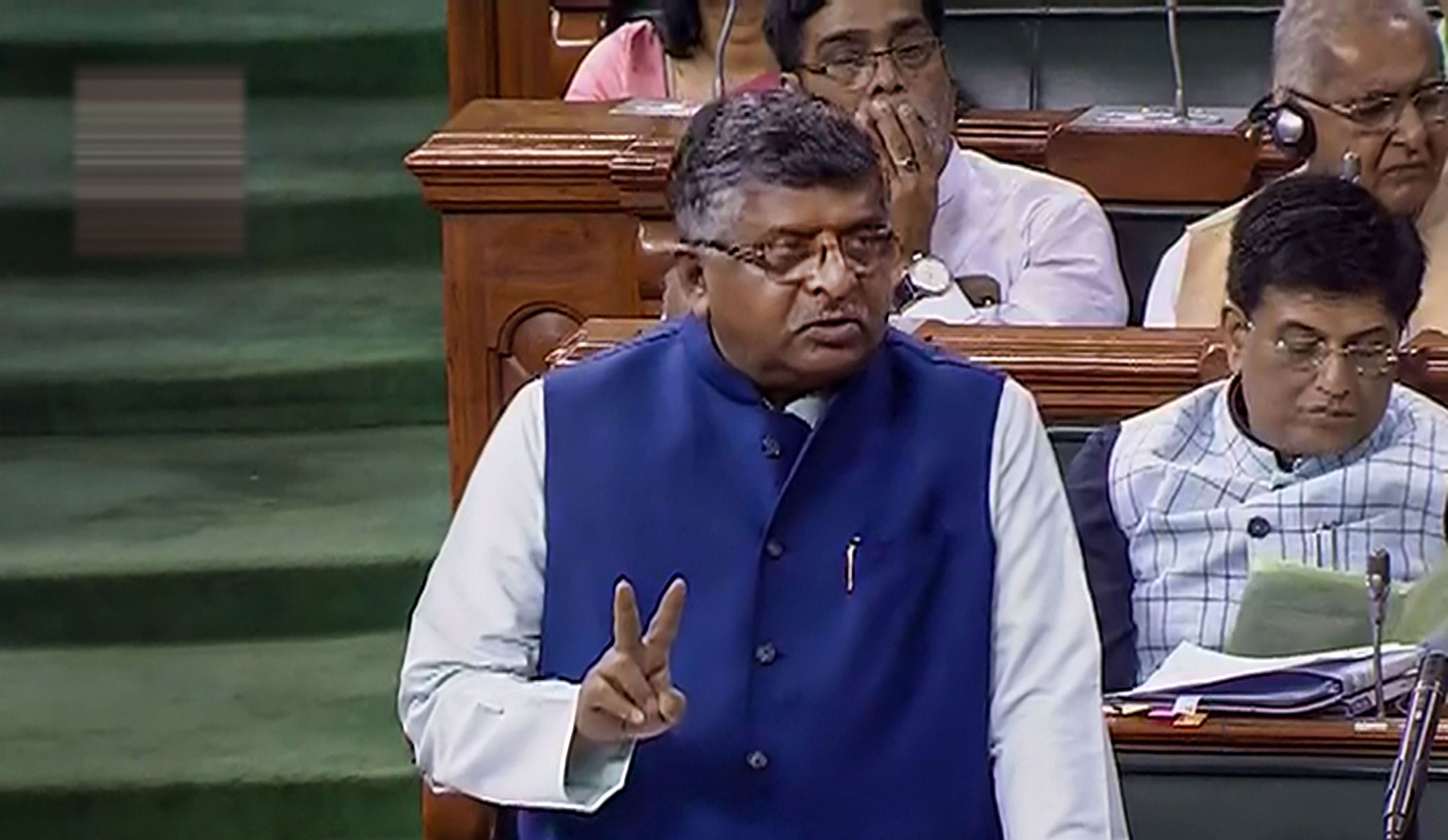 Union Communications and Law Minister Ravi Shankar Prasad speaks in the Lok Sabha during the Budget Session of Parliament, in New Delhi. (Source: PTI)