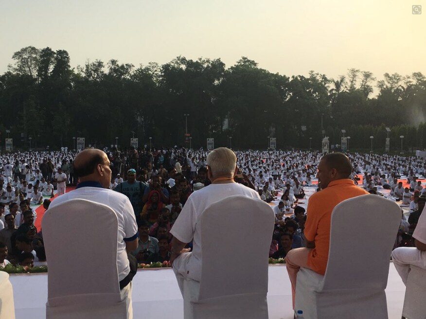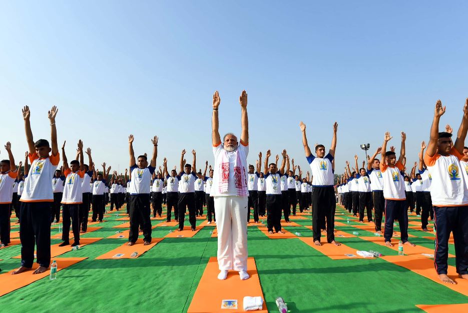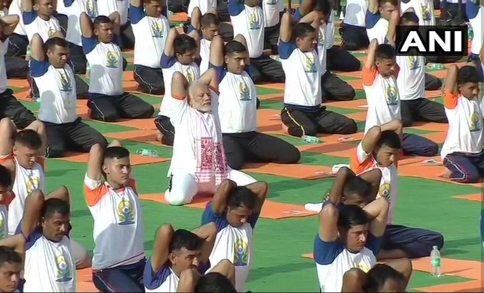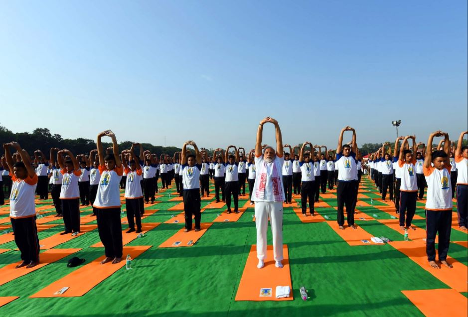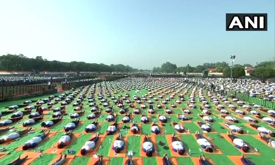 PM Modi addresses over 50,000 yoga enthusiasts on International Yoga Day.