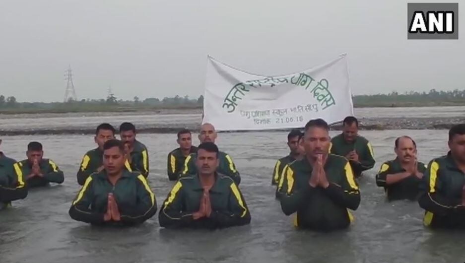 Indo Tibetan Border Police jawans perform 'River Yoga' in Digaru river, in Arunachal Pradesh's Lohitpur.