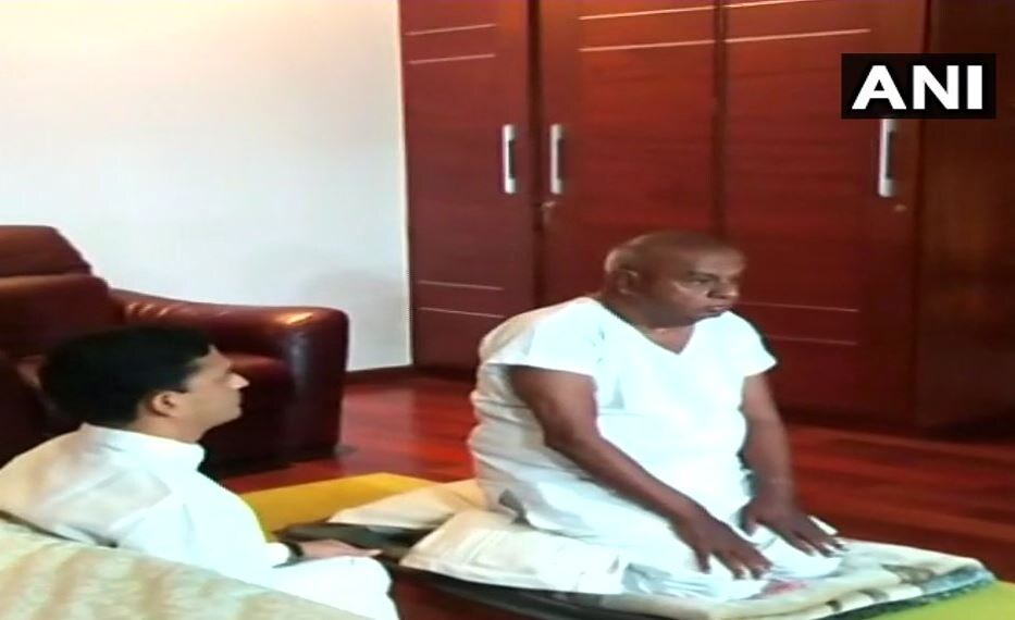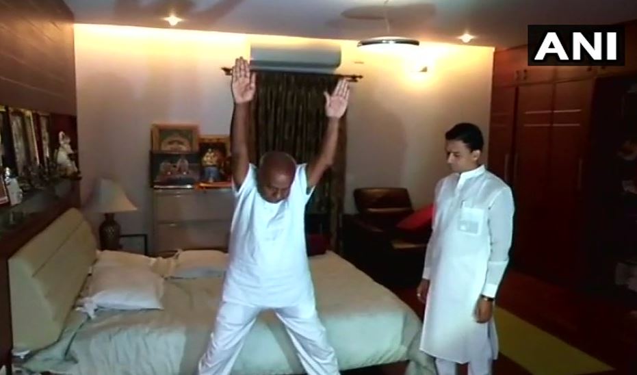 Former Prime Minister HD Deve Gowda performed Yoga at his residence in Bengaluru earlier on Thursday, 21 June.