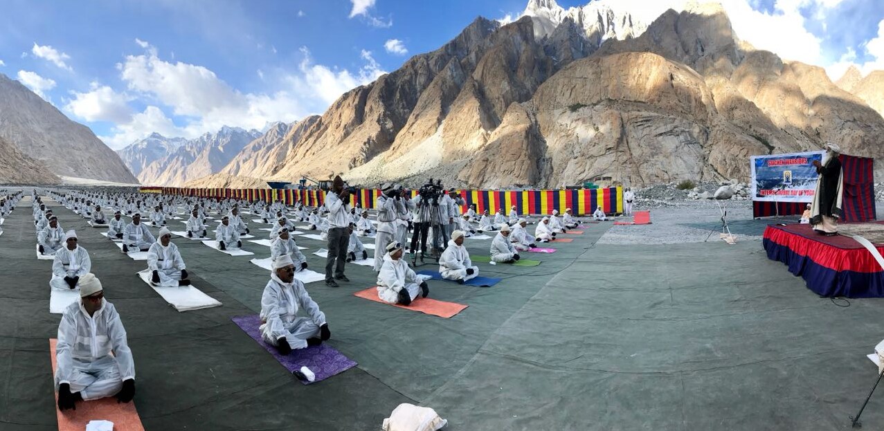 Army Personnel guarding the Siachen glacier, the highest battleground on earth, in Ladakh region of Jammu and Kashmir, observed the International Day of Yoga.