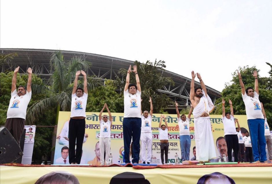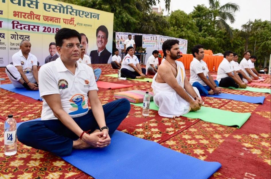 Union Minister Piyush Goyal marked International Yoga Day in Noida.