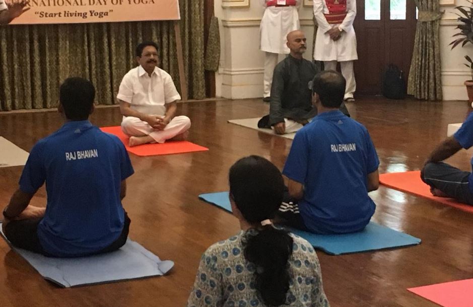 Maharashtra Governor C Vidyasagar Rao performed yoga at Raj Bhavan, marking International Yoga Day.