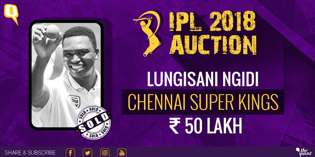 South Africa's newest fast bowler Lungisani Ngidi, who created havoc in the second Test against India, will be tormenting batsmen in the IPL as well. He joins Chennai for Rs 50 lakh.