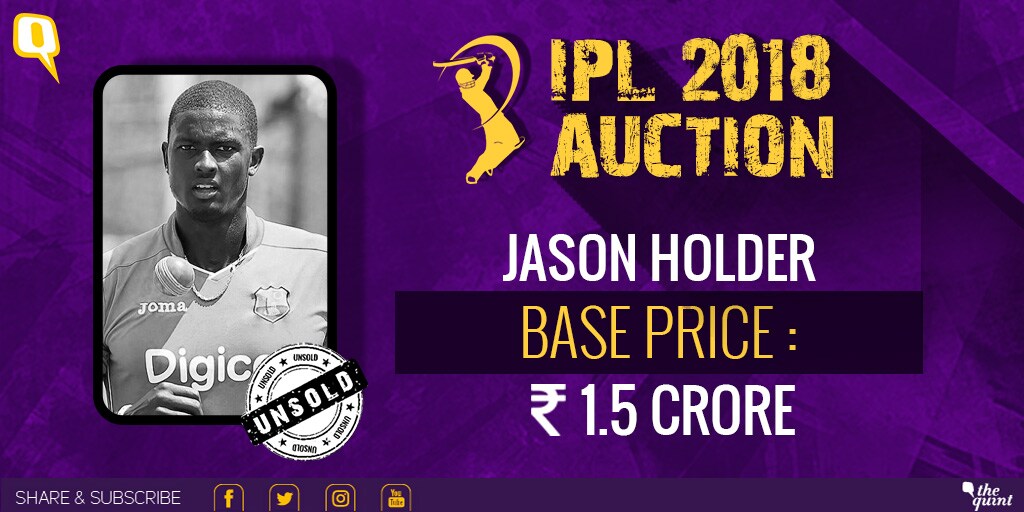West Indies' fast bowler Jason Holder attracts no bidders.