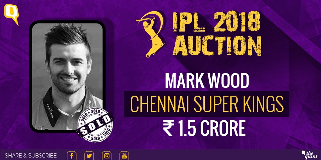England's fast bowler Mark Wood goes to Chennai Super Kings for Rs 1.5 crore. The 28-year-old has picked up 17 wickets from 16 matches.