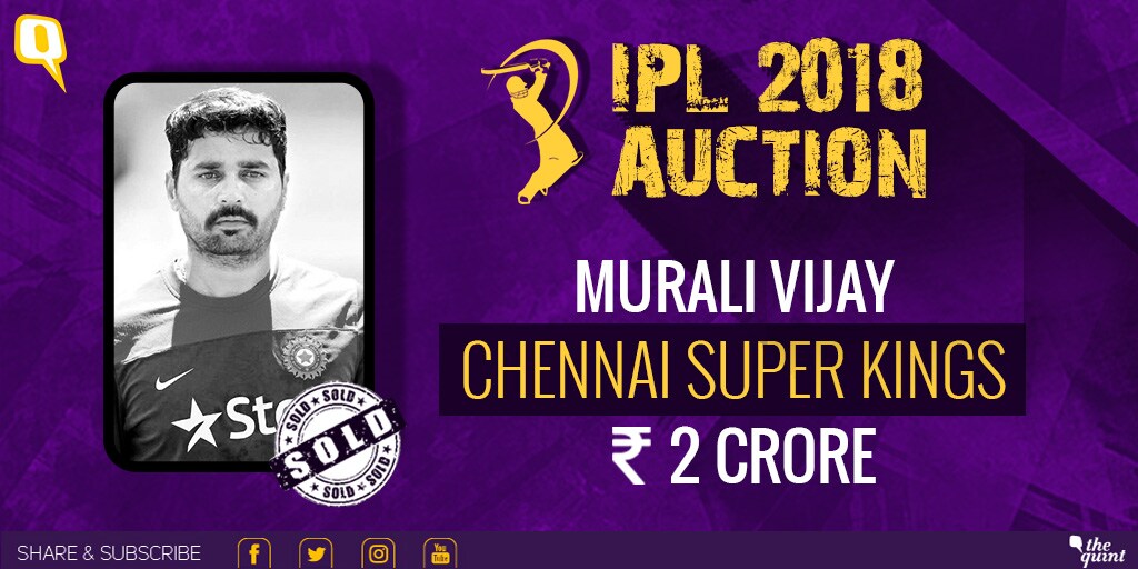 Phew! Murali Vijay finds a place in the Chennai Super Kings camp. He goes to the CSK for Rs 2 crore.