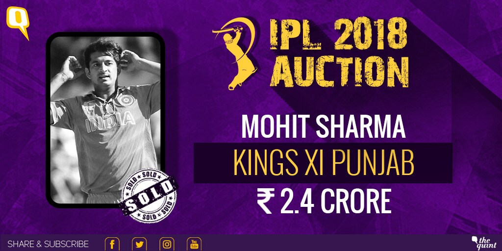 It's raining fast bowlers in the IPL Auction at the moment. The Kings XI Punjab used their Right to Match card for Mohit Sharma and let Sandeep go to the Sunrisers for Rs 3 crore.