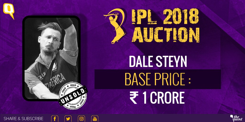 South Africa's Dale Steyn goes unsold. The injury to his heel in the first Test against India, could have had an impact on his chances at the auction this time.