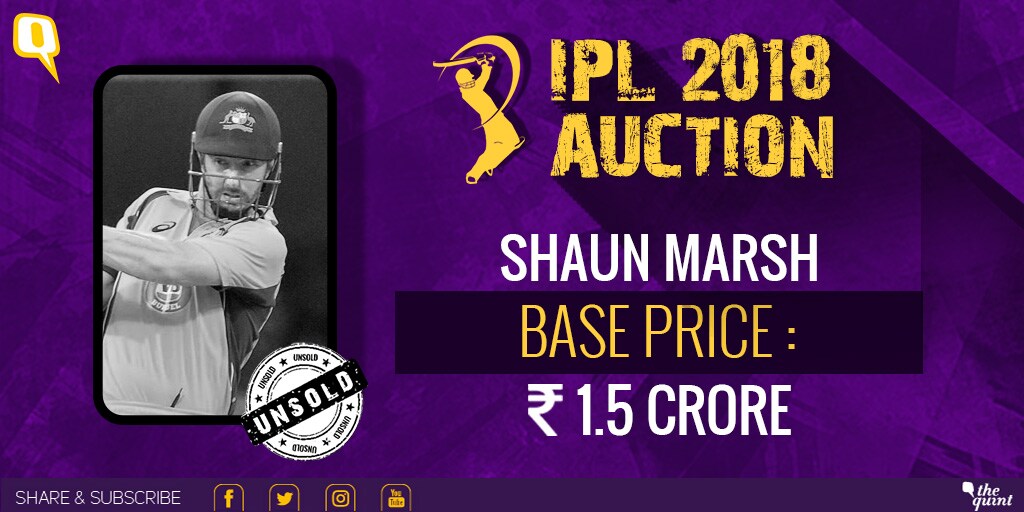 South Africa's fast bowler Dale Steyn and Australian batsman Shaun Marsh go unsold in this IPL Auction.