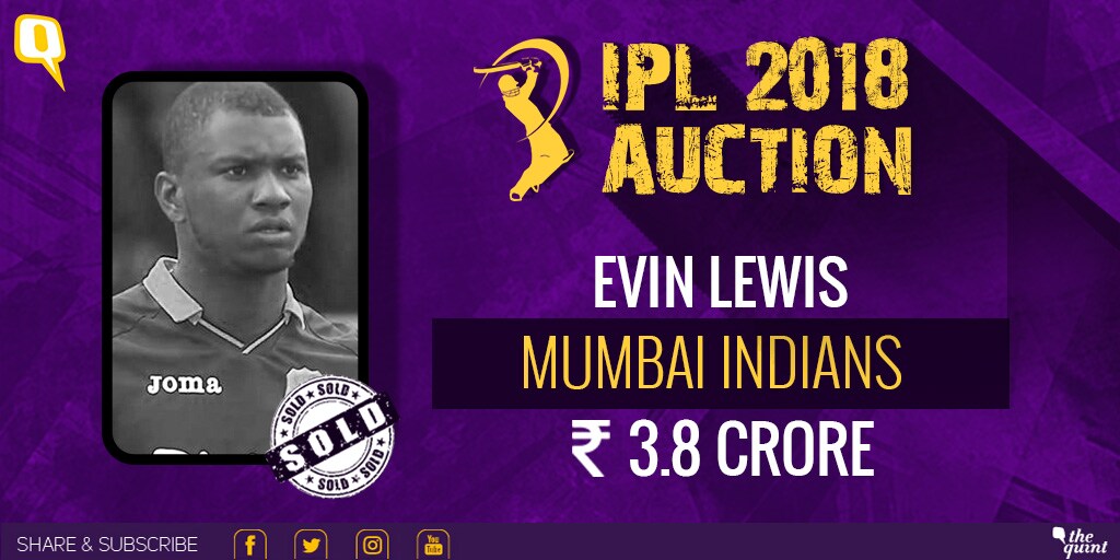 The Mumbai Indians have scalped an opening batsman in Evin Lewis for Rs 3.8 crore! The top-order batsman Saurabh Tiwary goes to Mumbai Indians for Rs 80 lakh.