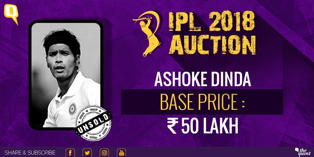 Bengal's fast bowler Ashoke Dinda finds no takers in the IPL auction.
