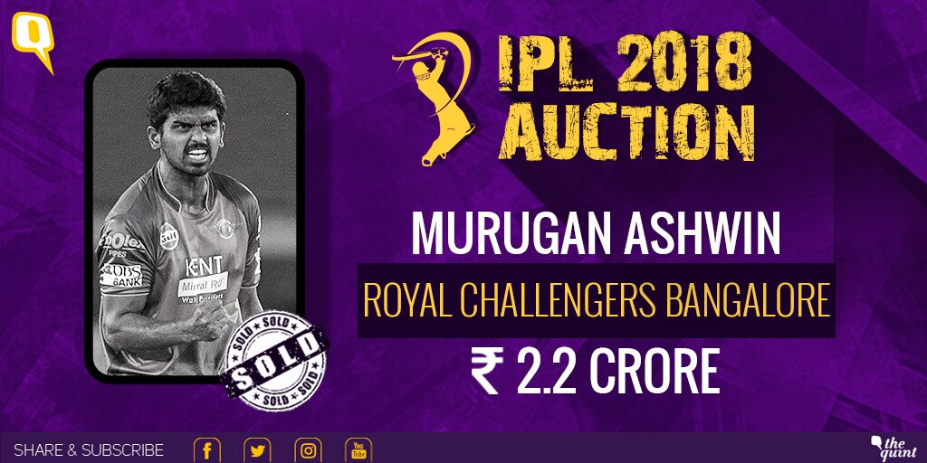 The Tamil Nadu leg-spinner Murugan Ashwin bags a contract of Rs 2.2 crore with Royal Challengers Bangalore. Ashwin has picked up 30 wickets in 32 T20 matches.