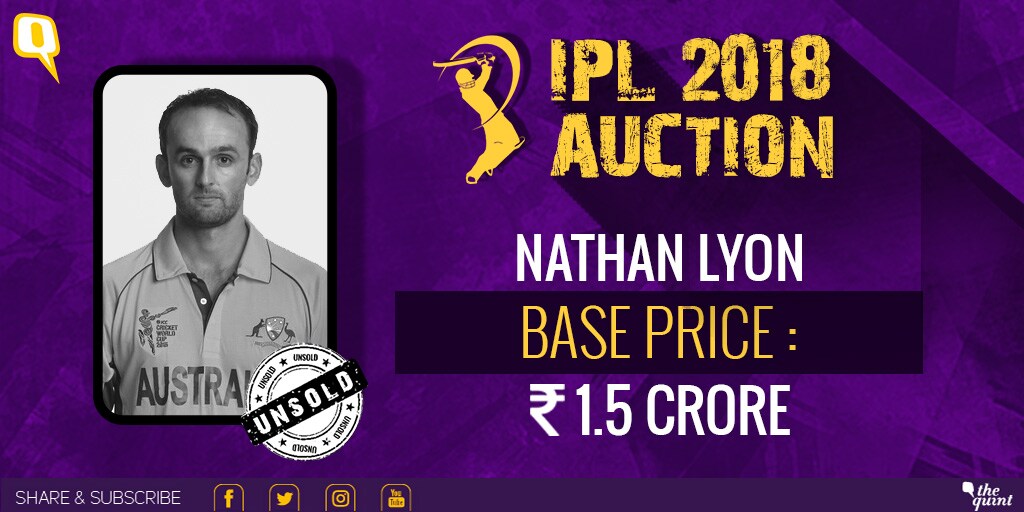 Veteran Australian off-spinner Nathan Lyon, who troubled Indian batsmen, during the Test series agains India, goes unsold.
