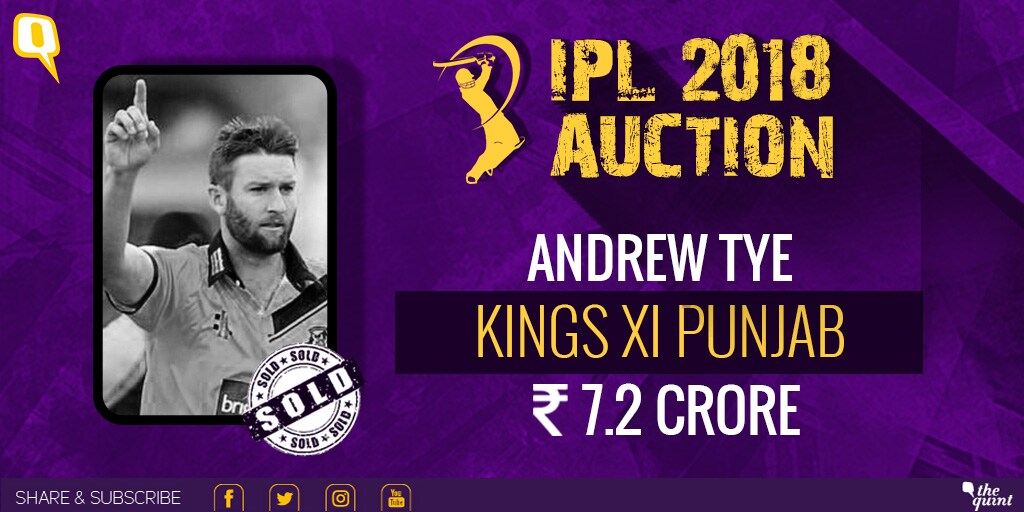 Australia's Andrew Tye joins Kings XI Punjab for Rs 7.2 crore. The fast bowler had a fantastic IPL last year, picking up 12 wickets from 6 matches. The 31-year-old scored 53 runs in 6 matches.