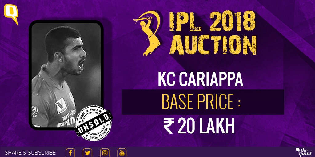No takers for Karnataka's leg-spinner KC Cariappa. His base price is set at Rs 20 lakh.