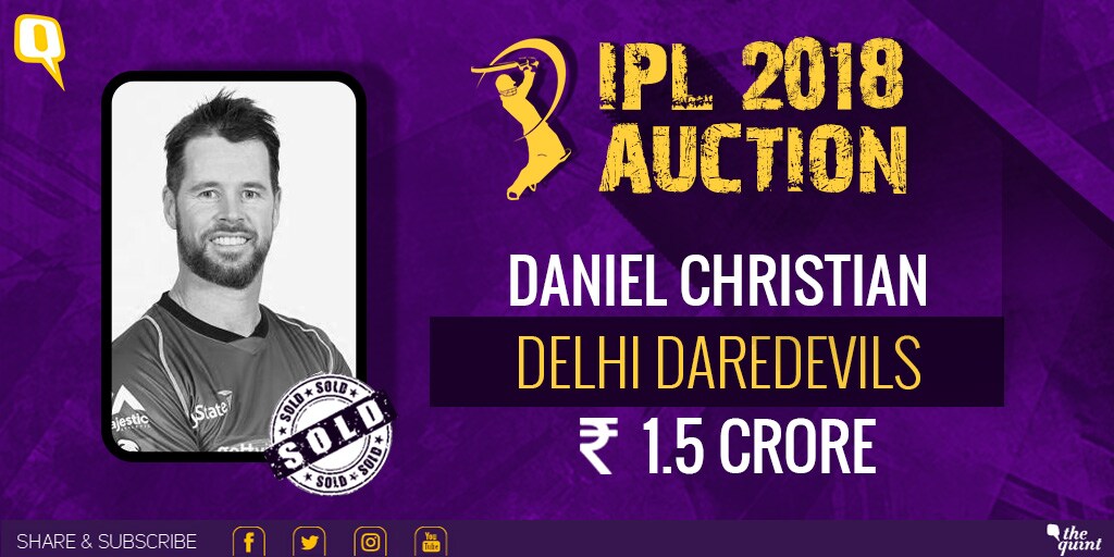 Australia's all-rounder Daniel Christian goes to Delhi Daredevils for Rs 1.5 crore. Off-spinning all-rounder Jayant Yadav sold to Delhi for Rs 50 lakh.