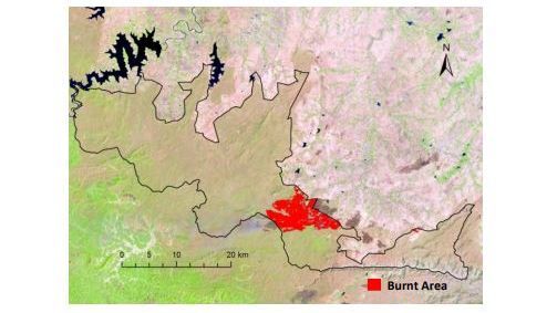 As per the information provided in the report, fire affected areas increased in size from 21 ha on 23 February to 1808 ha the following day. Final estimation of fire-affected areas on 25 February, the last day the fire was active, was 4419 ha or 10,920 acres.
