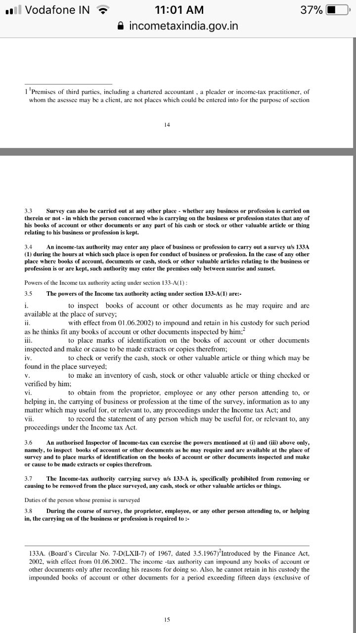 Powers of search and seizure are provided in the Income Tax Act 1961 under Section 132 of the Act, while powers of survey are defined under Section 133A of the Act. The powers of I-T officers under these provisions of law are not the same – for instance, when a survey is conducted, the officers have only a limited power to impound books of accounts and other such documents (reasons for which have to be specified), unlike their powers during a search.