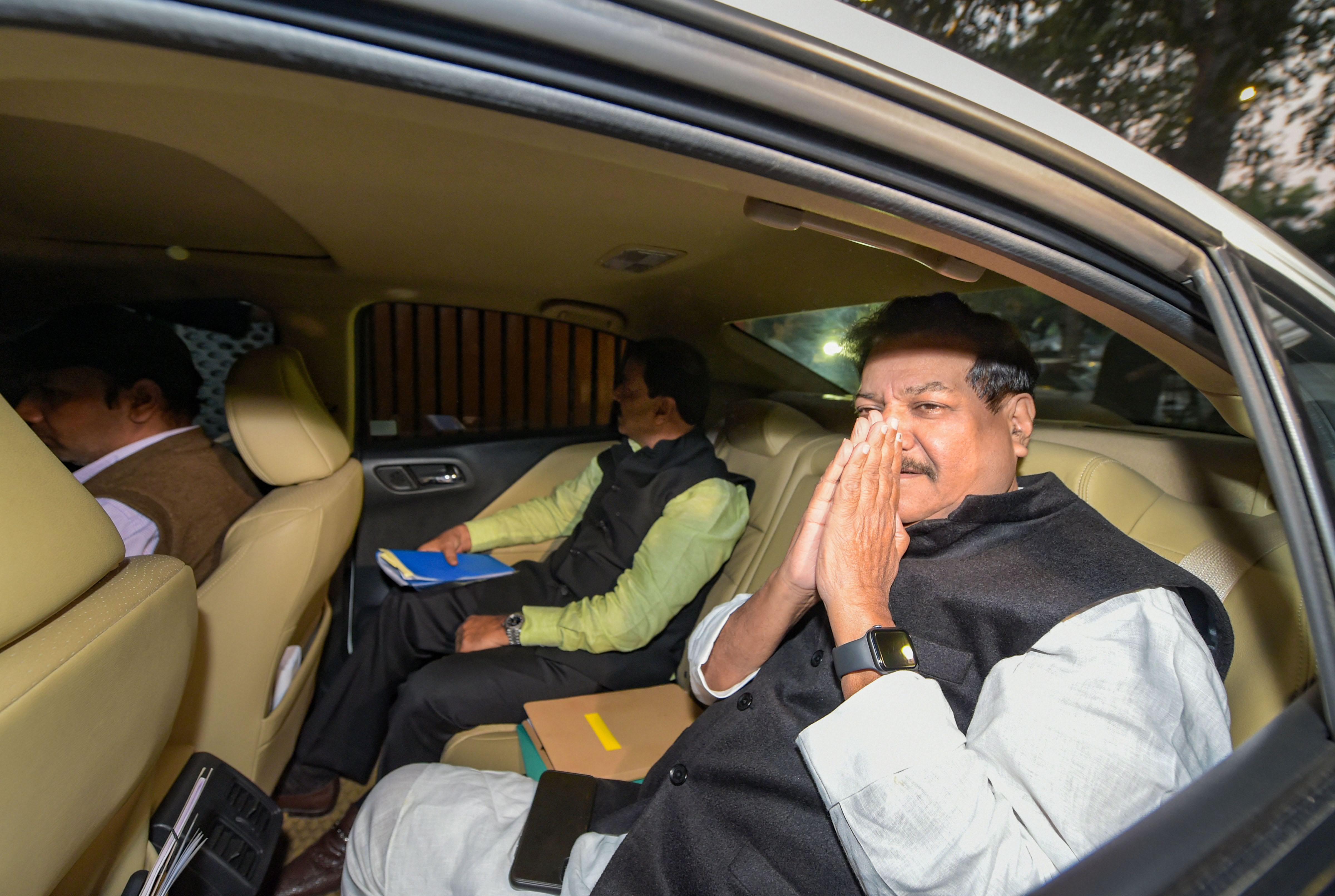 Senior Congress leader Prithviraj Chavan arrives to attend the NCP-Congress meeting at the residence of NCP chief Sharad Pawar, in New Delhi. (Source: PTI)