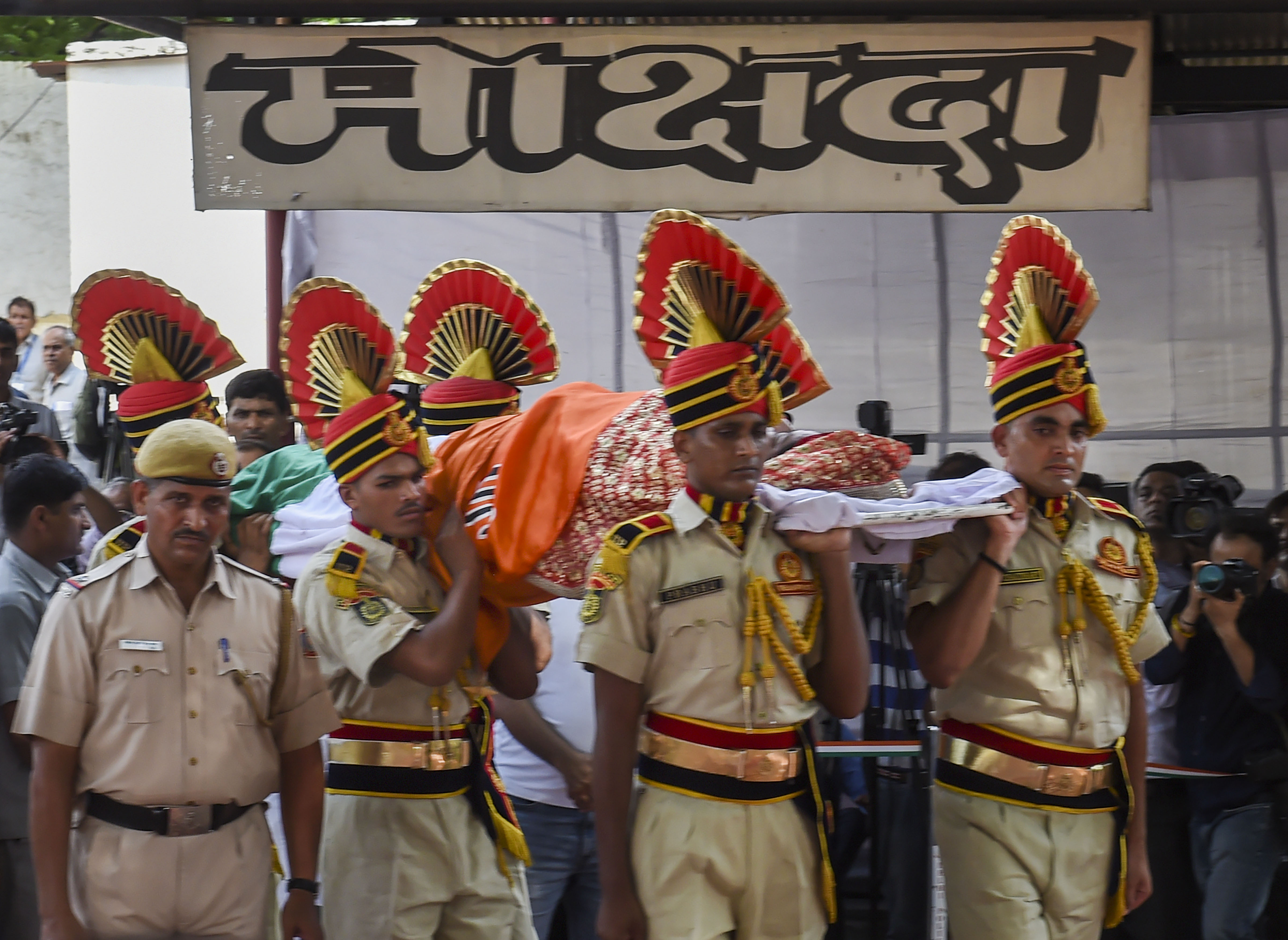 Hundreds of people, including Prime Minister Narendra Modi, Bharatiya Janata Party president Amit Shah and veteran party leader LK Advani bade her farewell.