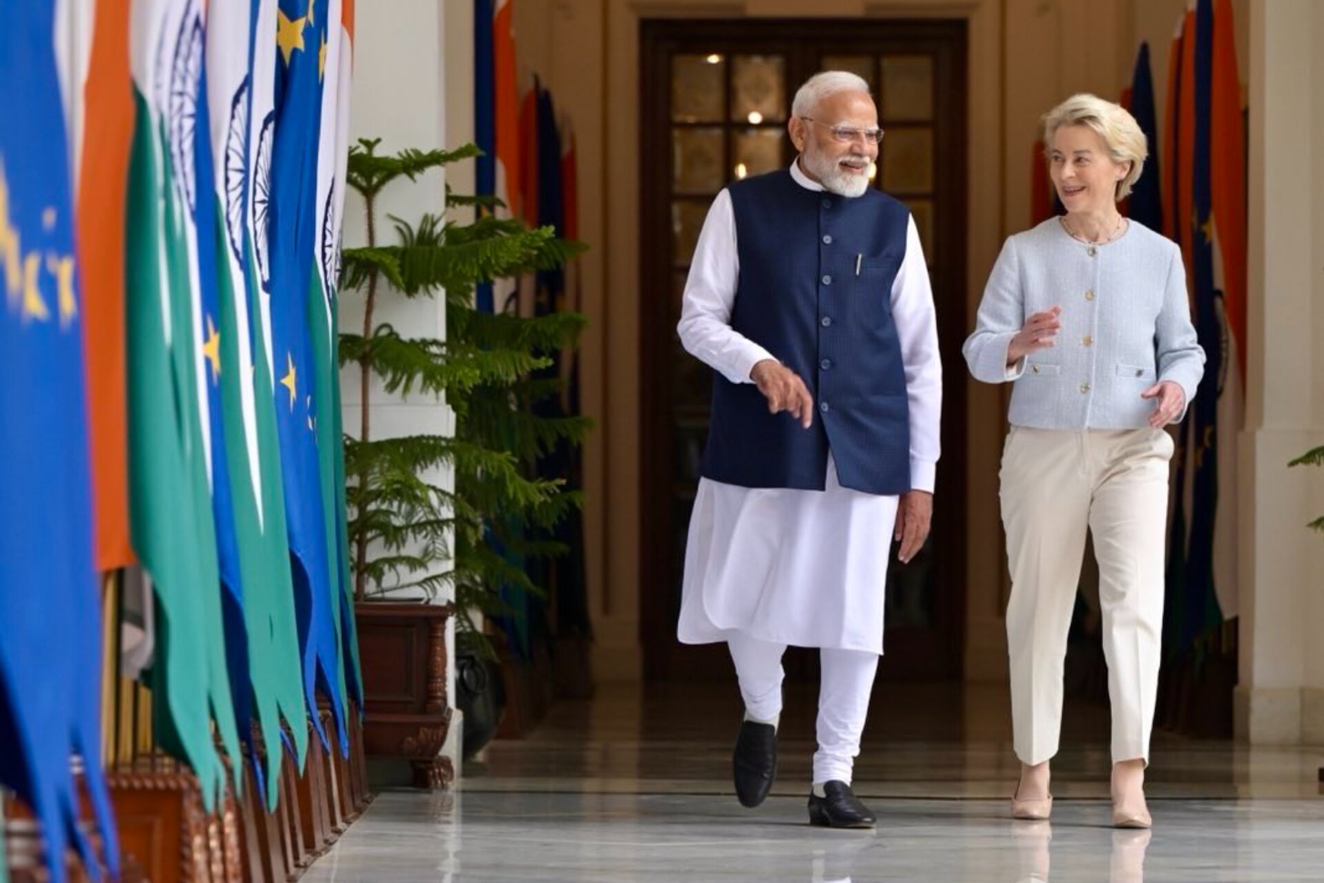 The leaders' statement both said Modi and Von der Leyen expressed confidence that this "momentous visit" will mark the beginning of a new chapter in the history of India-EU relations.