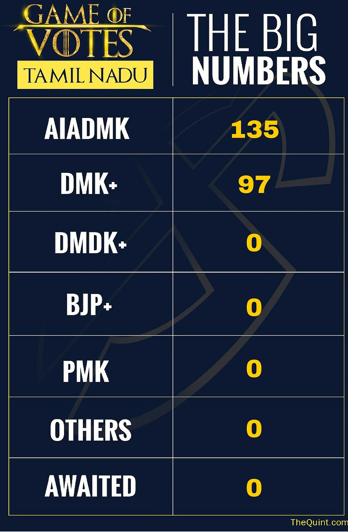 AIADMK is leading with over 105 seats, DMK in over 73 seats, reports The Indian Express. Three rounds out of 14 rounds are over.