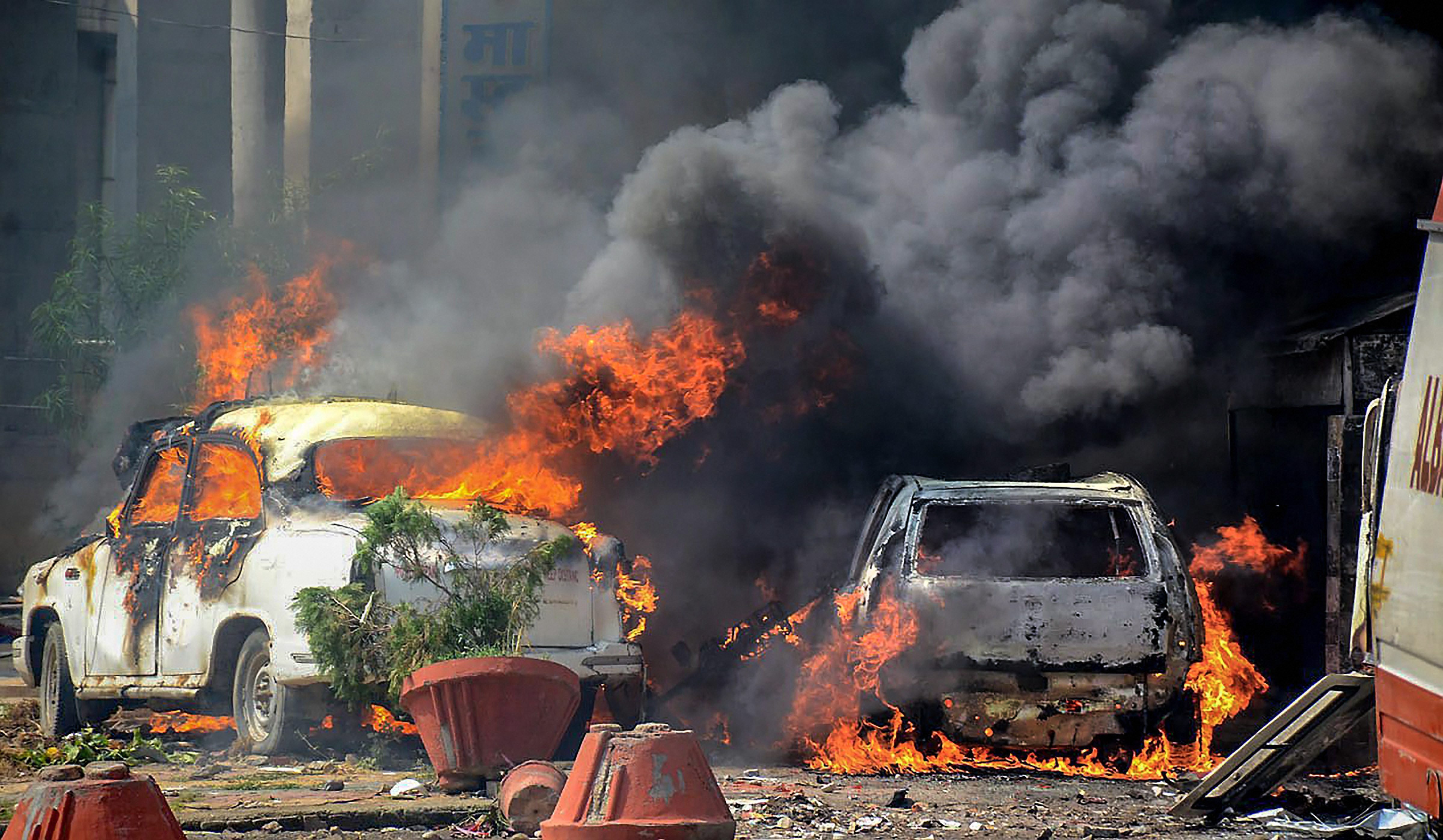 Protests turned violent in Rajasthan's Barmer as demonstrators set cars ablaze and damaged property.