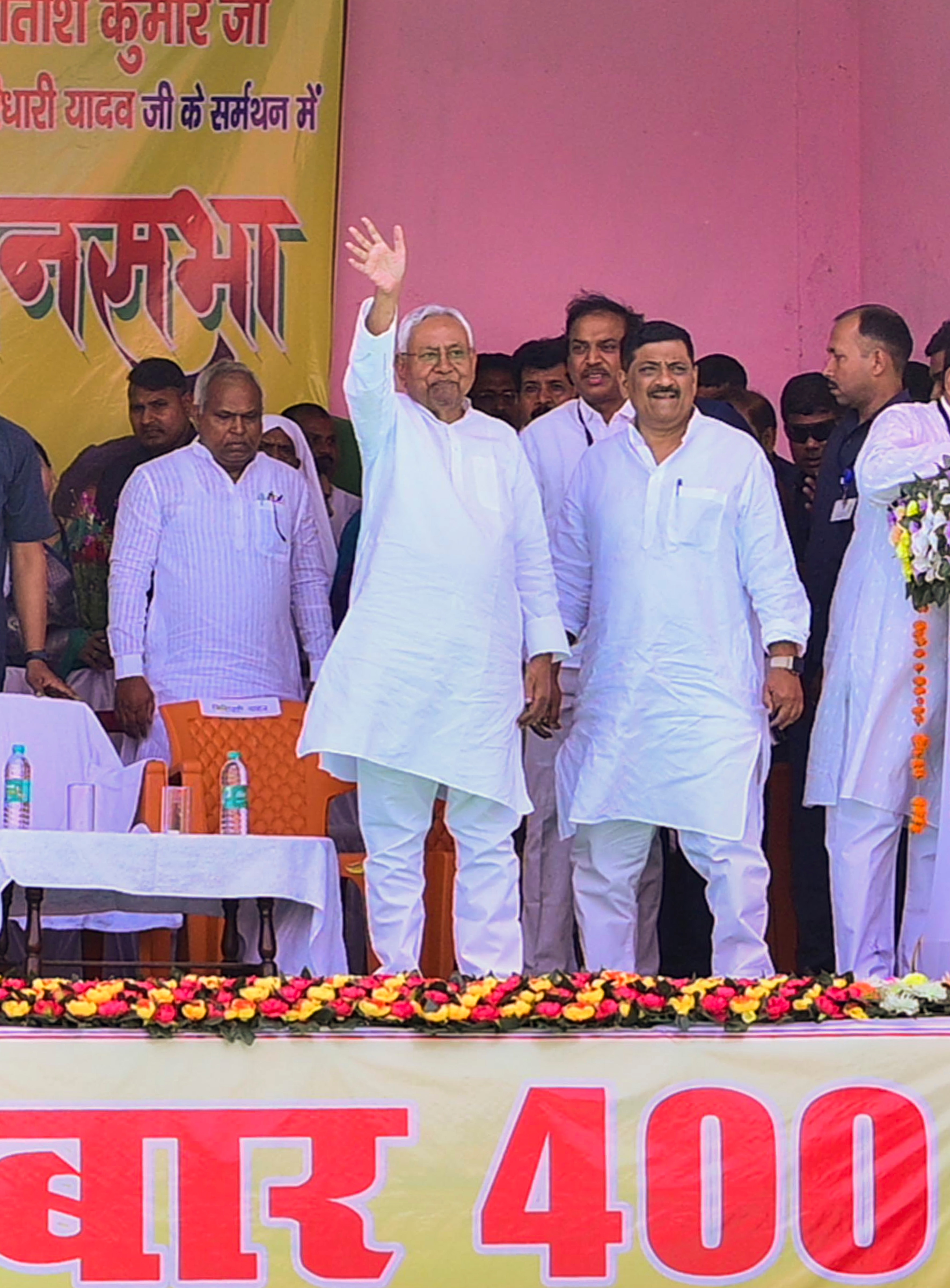 Bihar Chief Minister Nitish Kumar held a campaign rally in Banka. His party JD(U) is part of the BJP-led NDA fighting off a challenge from the INDIA bloc in the state, led by RJD.