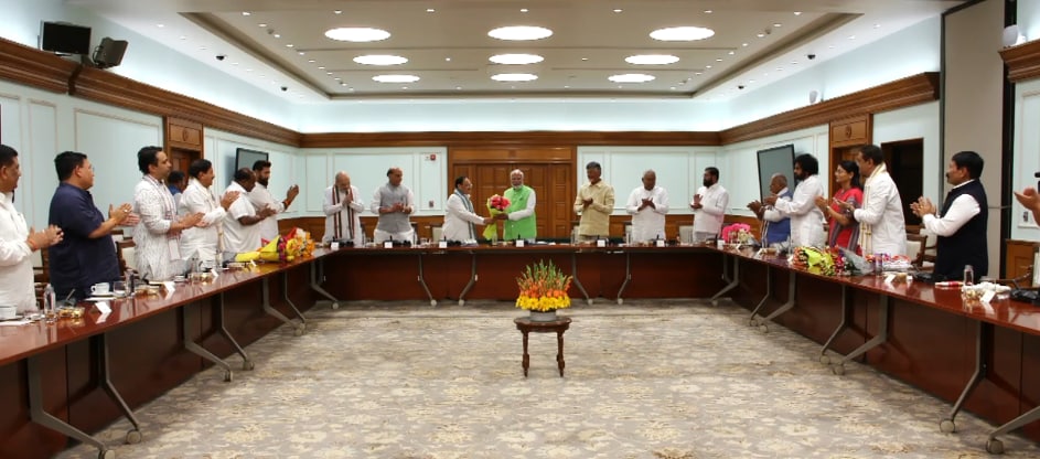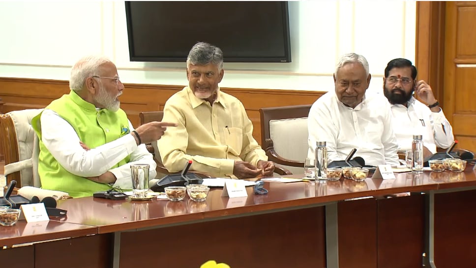 TDP leader N Chandrababu Naidu, Bihar Chief Minister Nitish Kumar, Maharashtra Chief Minister Eknath Shinde, LJP(R) leader Chirag Paswan and NCP leader Praful Patel were among those who attended the meeting.