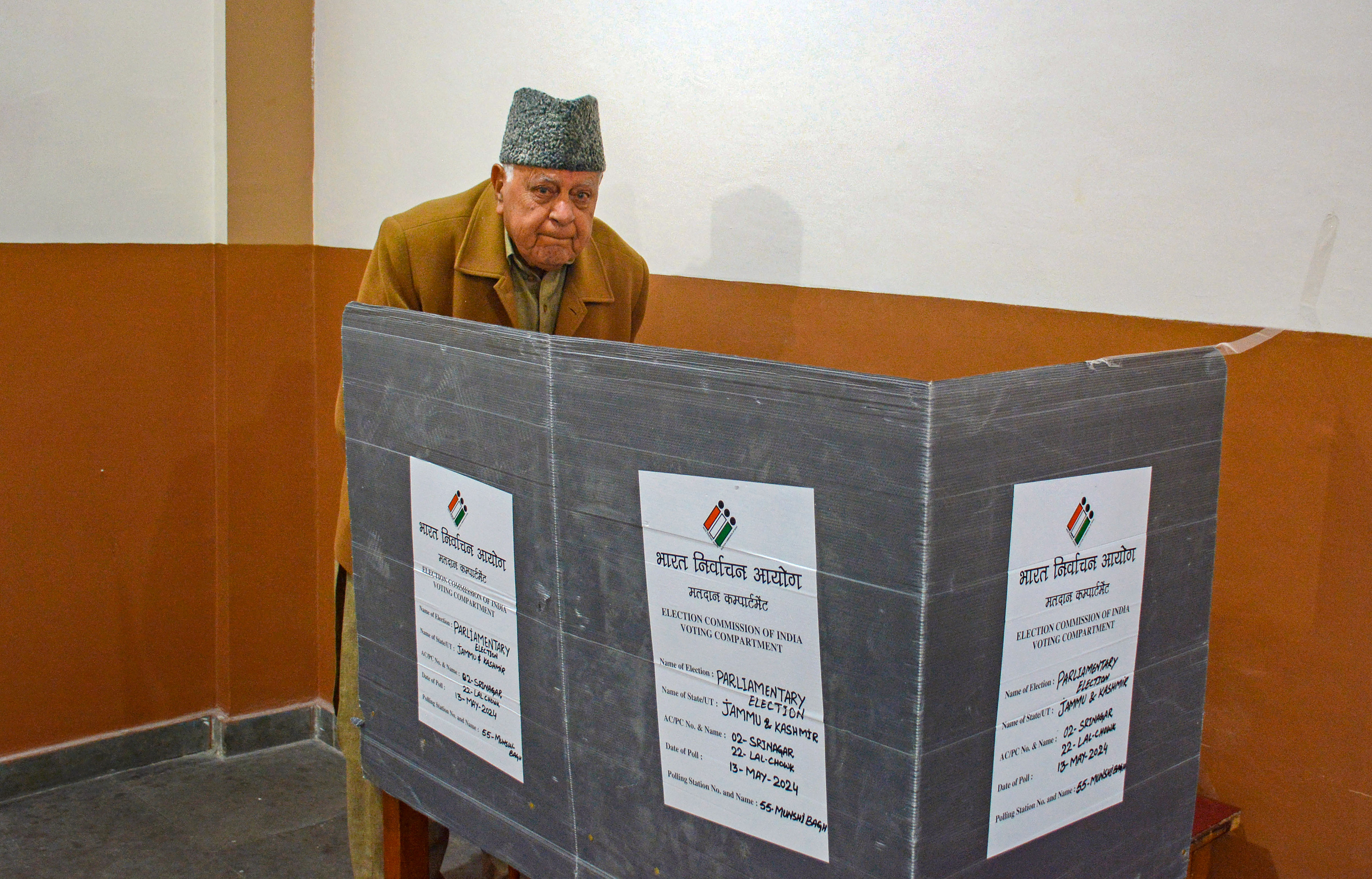 National Conference President Farooq Abdullah and party's Vice President and candidate from Baramulla constituency Omar Abdullah casts his vote for fourth phase of Lok Sabha elections, in Srinagar.