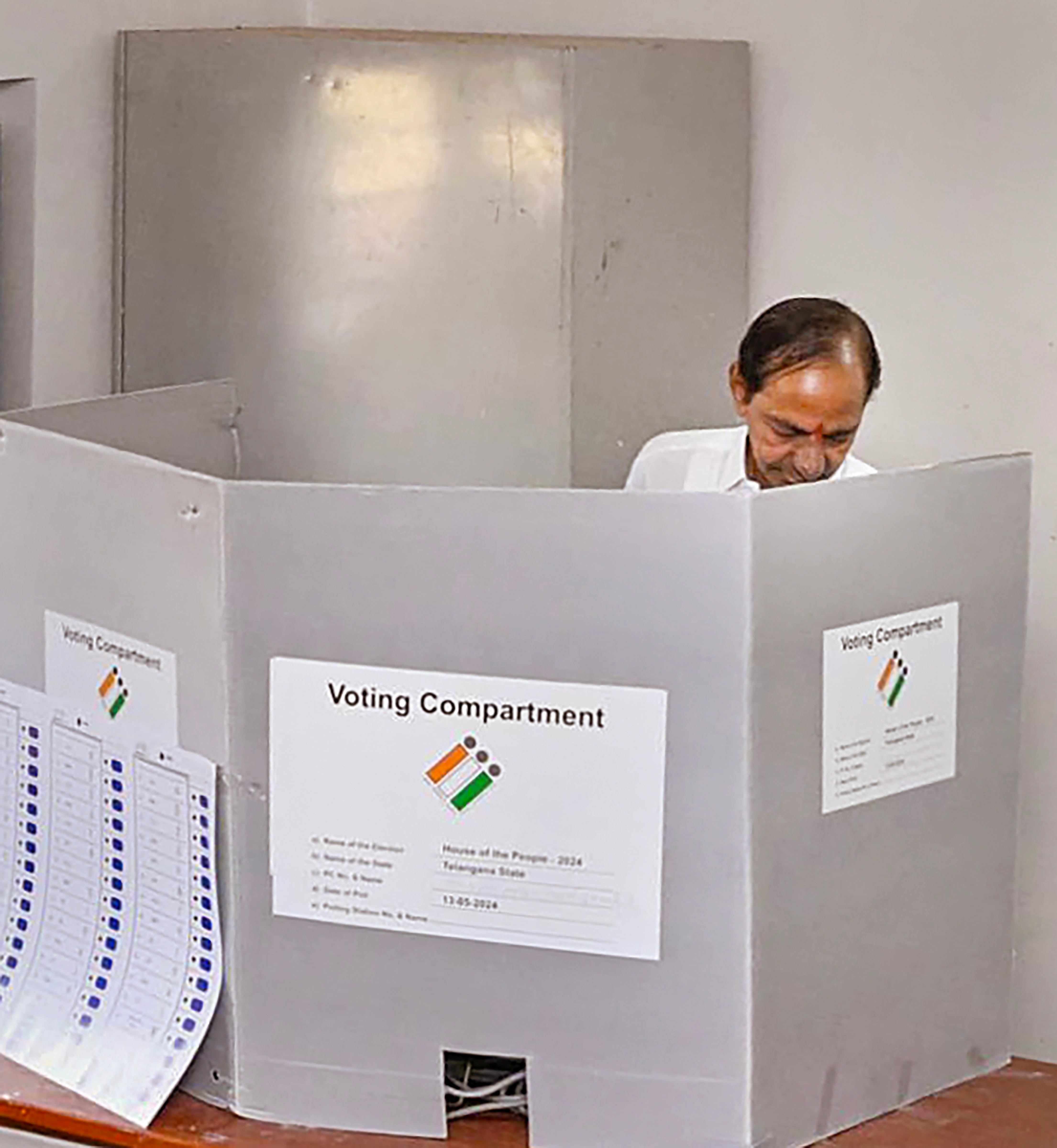 BRS leader K. Chandrashekar Rao casts his vote at a polling booth for the fourth phase of Lok Sabha elections, in Siddipet district, Telangana. (Source: PTI)