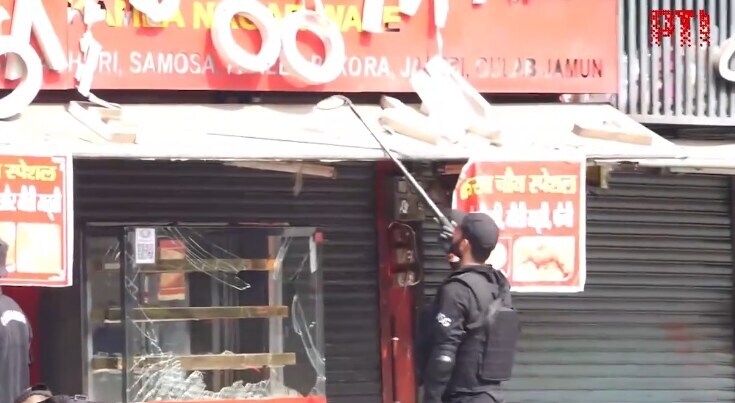 Police said the wall of the school, nearby shops and a car received damage and the area has been cordoned off.Photo Source: Twitter/PTI