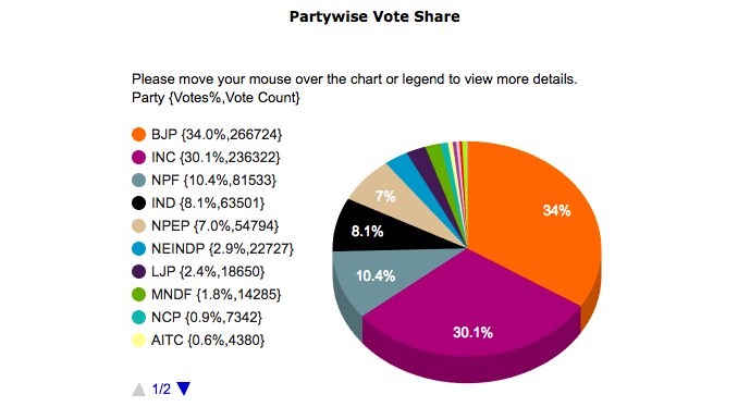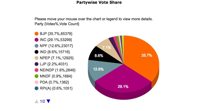 Congress wins 8 seats in Manipur and is currently in the lead. BJP wins 3 and NPF wins 2 seats.
