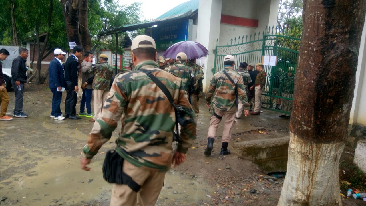 The Election Commission has said that central paramilitary forces were guarding the EVMs as prohibitory orders under Section 144 CrPC were imposed by the District magistrates near the perimeter of all counting halls.He said that despite logistical difficulties due to the ongoing economic blockade and prevailing law and order situation, elections have been completed smoothly.